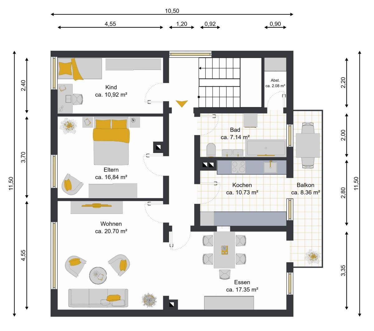 Erdgeschoss - Wohnung 1 mit ca. 95 m ² (eigengenutzt):