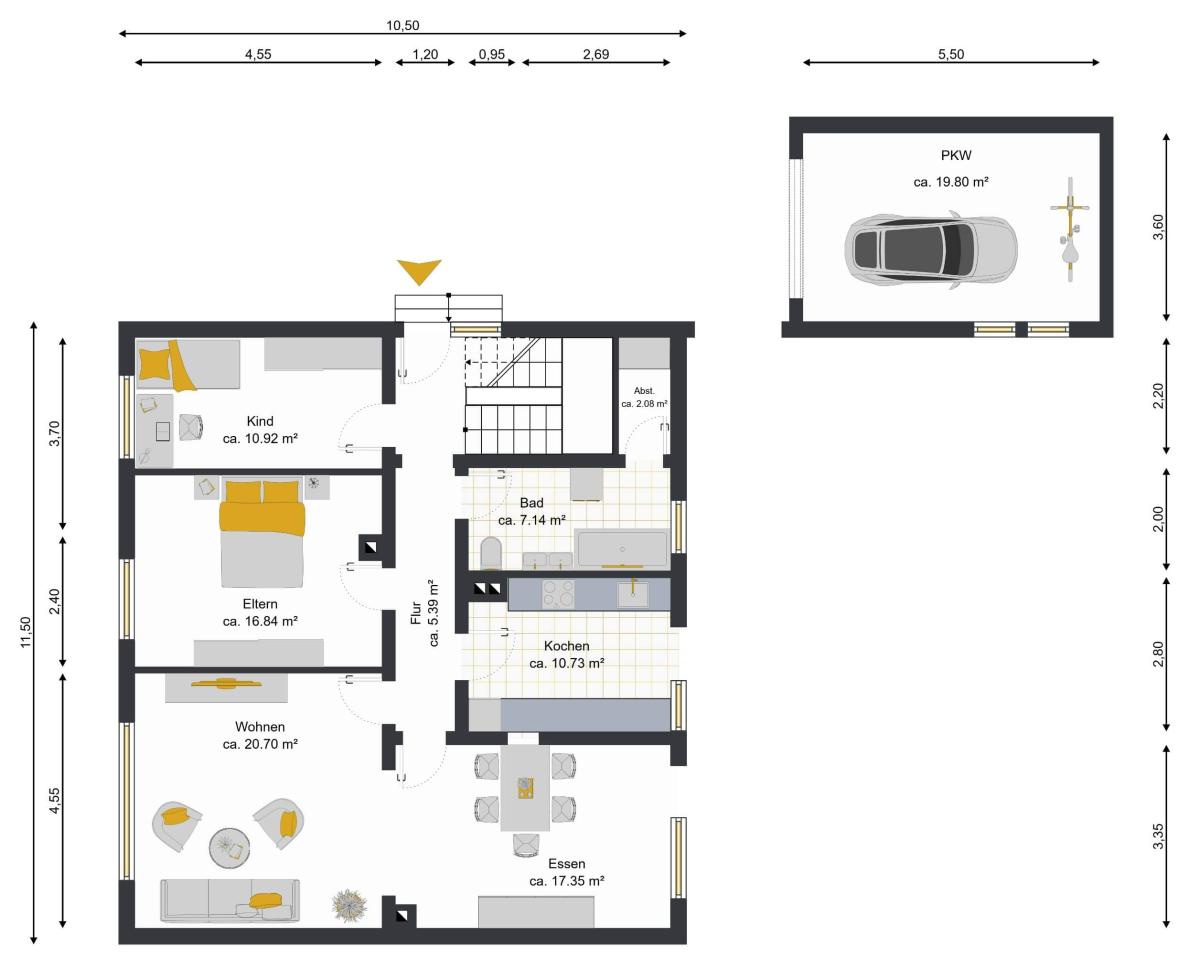 Die Aufteilung im Haus ist wie folgt: