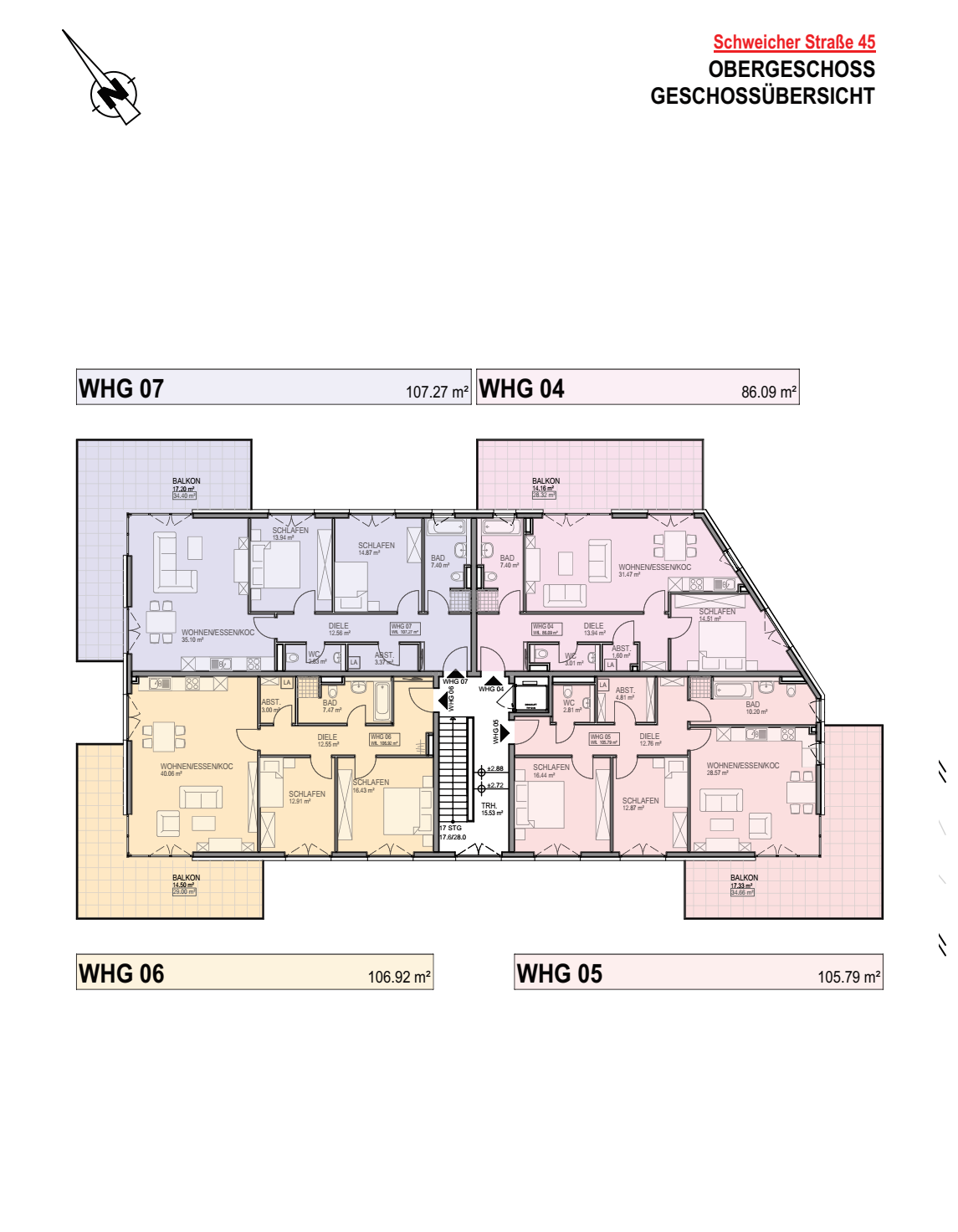 Alle Wohnungen verfügen über schöne Balkone, Terrassen oder Dachterrassen.
