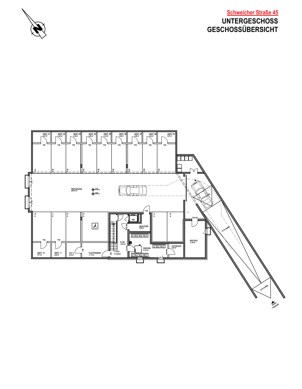 Jeder Wohnung ist ein Tiefgaragenstellplatz mit angrenzendem Abstell/Kellerraum im Kellergeschoß zugeordnet. (Mehrpreis 23.000 EUR)
