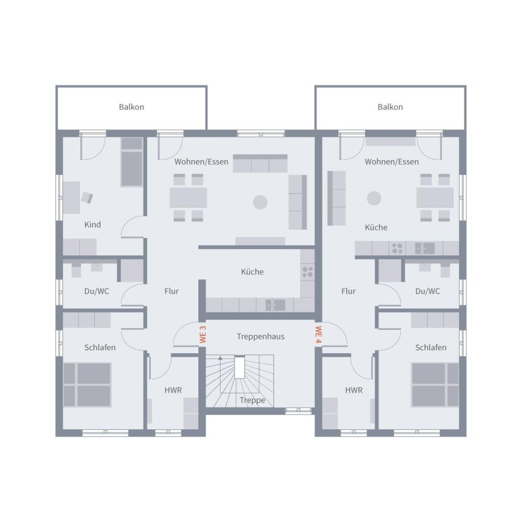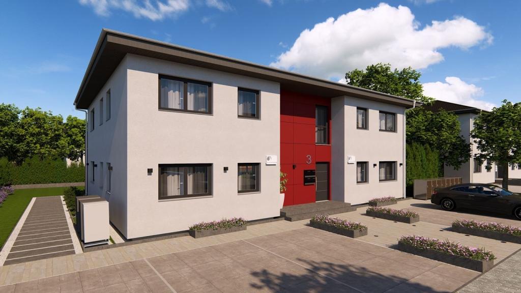 Dieses moderne Mehrfamilienhaus beherbergt vier unterschiedlich geschnittene Wohneinheiten, die großzügig und offen gestaltet sind - ideal für Familien, Paare oder Einzelpersonen.
