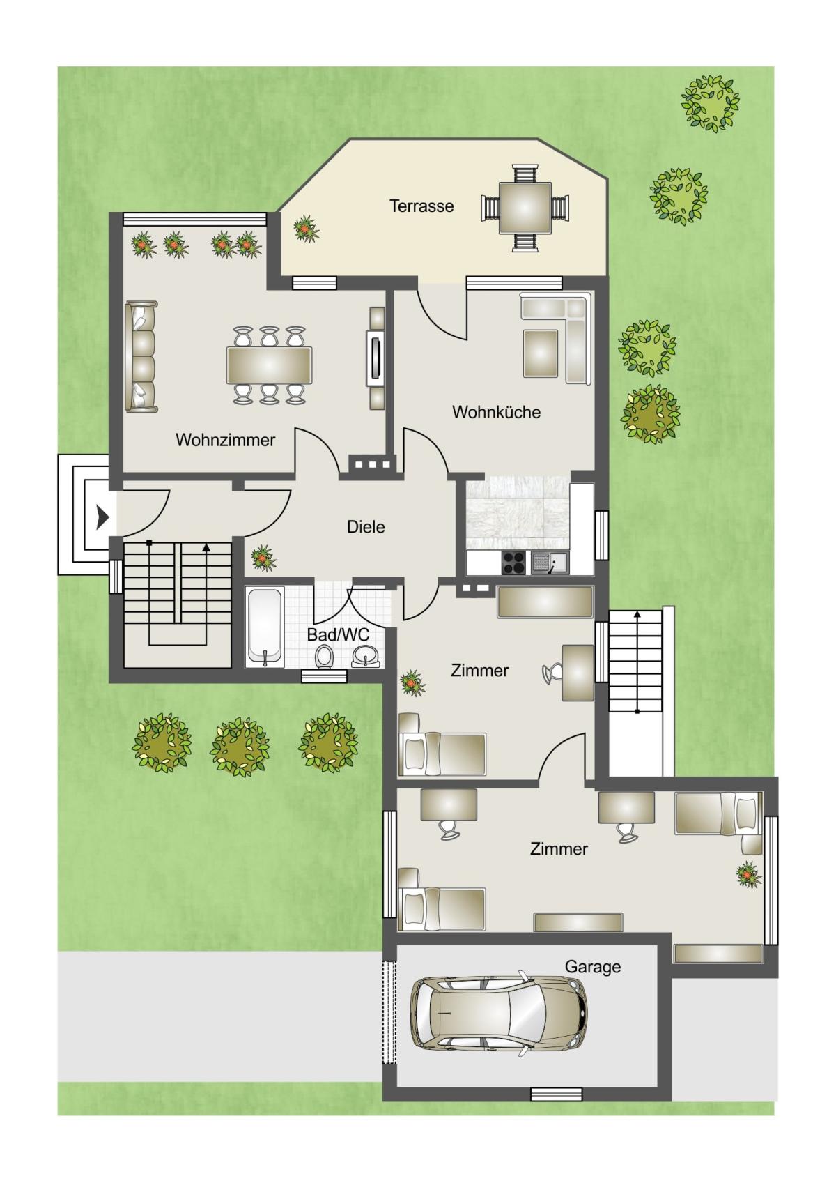 Alle Wohnungen sind separat über das Treppenhaus zu erreichen.