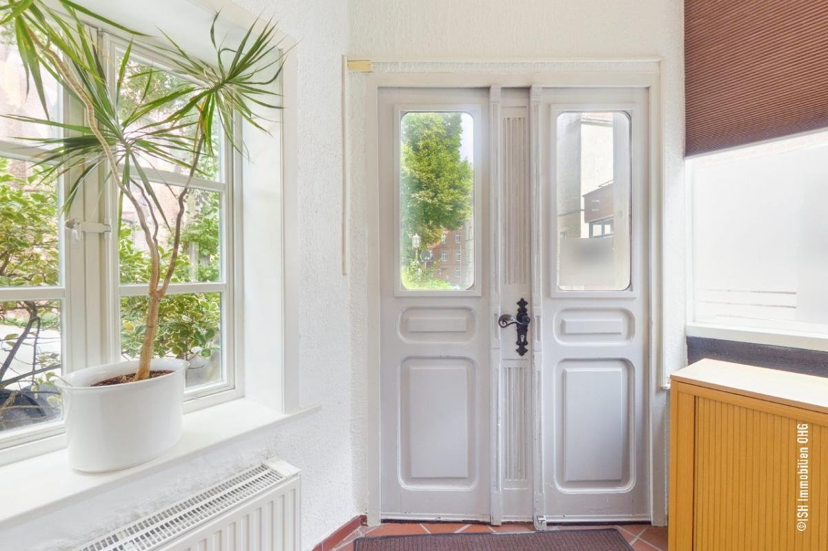 Bereits vor dem Betreten der Immobilie werden Sie sofort von dem Charme vergangener Zeiten verzaubert. Die Eingangstür und die Fassade des Gebäudes bestechen durch ihre klassische Architektur und verleihen der Immobilie eine einzigartige Ausstrahlung. Diese besondere Ausstrahlung ist natürlich erhaltenswert und so überrascht es nicht, dass die Fassade der Immobilie denkmalgeschützt ist.