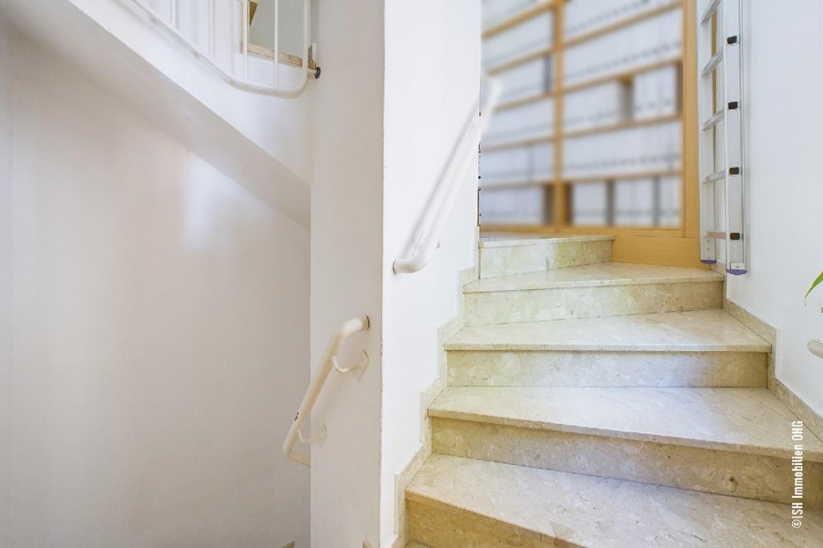Im Inneren erwartet Sie ein großzügiger und einladender Eingangsbereich, der Sie und weitere Besucher herzlich willkommen heißt. Das Büro selbst präsentiert sich im Erdgeschoss und 1. Obergeschoss geräumig und offen und bietet somit ausreichend Platz für individuelle Arbeitsbedürfnisse. Die Räumlichkeiten schaffen eine angenehme Arbeitsatmosphäre und lassen Platz für kreative Geschäftsideen in einem historischen und dennoch modernen Ambiente. Hier befinden sich ebenfalls die Büroküche und die Sanitäranlagen für die Angestellten.