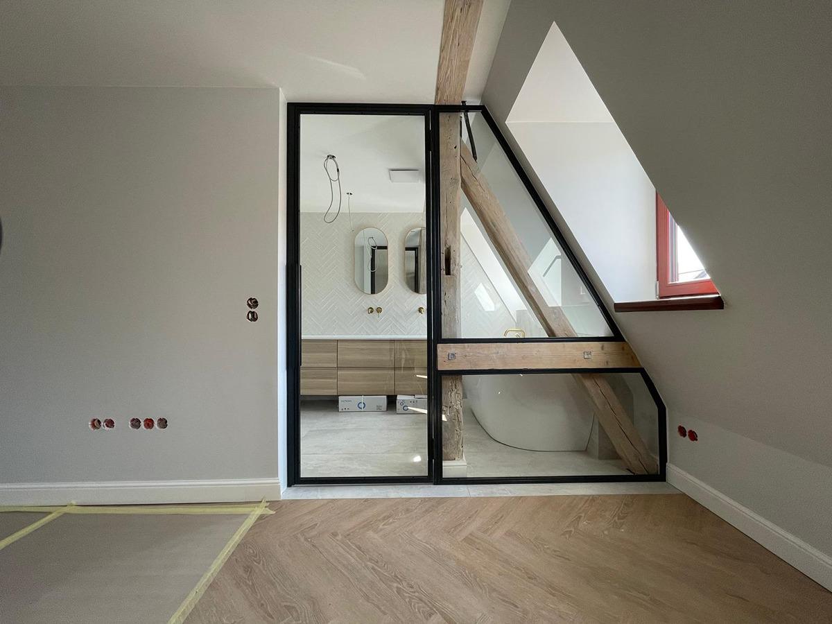 - ein verglaster Raumteiler im Schlafzimmer zu den Bädern