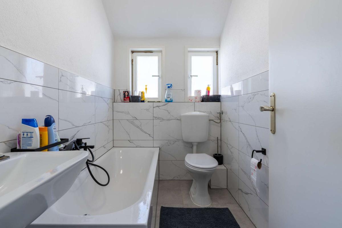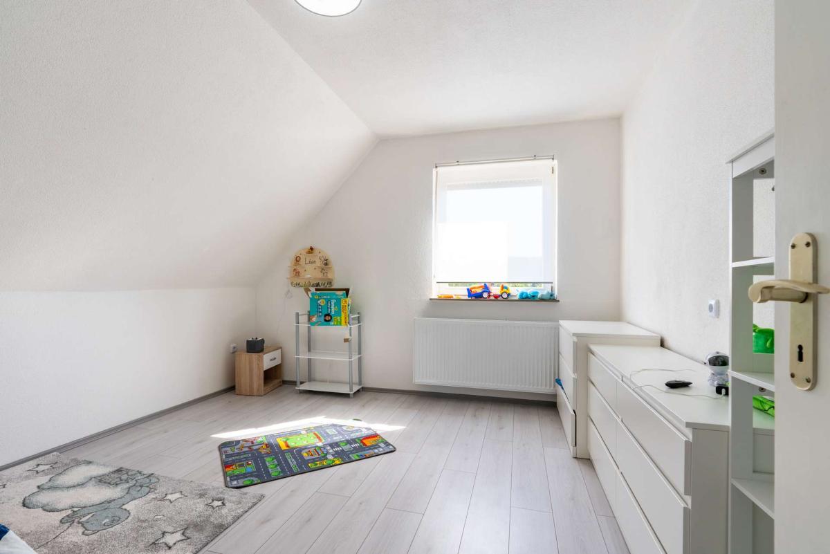 Im Obergeschoss stehen drei gut geschnittene Zimmer zur Verfügung, die sich als Schlaf-, Kinder- oder Arbeitszimmer nutzen lassen. Zudem befindet sich hier ein Badezimmer mit Badewanne.