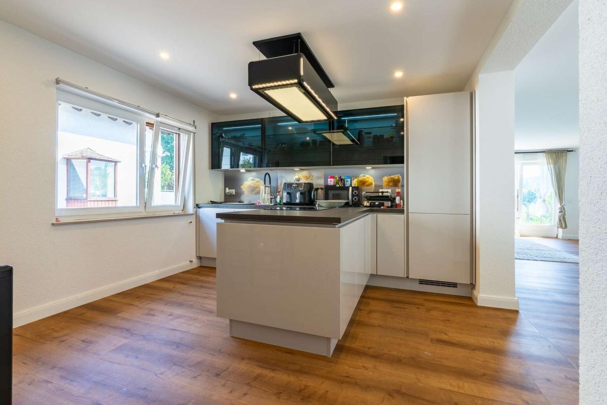 Das Haus ist über eine Hochparterre-Treppe zugänglich und führt in das Erdgeschoss mit einem großzügigen Wohn- und Essbereich, der direkten Zugang zur Loggia und in den Garten bietet. Ergänzt wird diese Ebene durch eine Küche inklusive hochwertiger Einbauküche, sowie ein helles Tageslichtbad mit Dusche. Vom Erdgeschoss aus besteht der Zugang sowohl ins Obergeschoss als auch in den Keller.