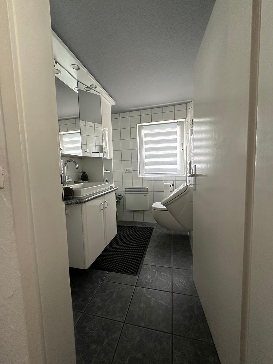 1 Gästetoilette. Zuzüglich Nutzflächen wie Werkstatt, 2 x Holzschopf (Innen und Außen), große Terrasse, Dachboden. 3 Garagen und 2 Stellplätze vor dem Haus.