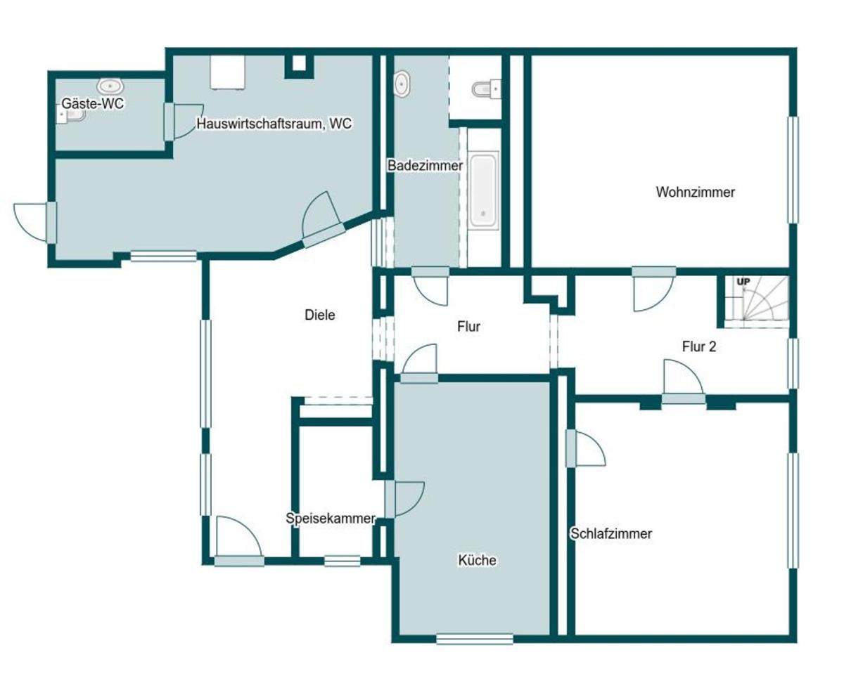 Zur Verfügung stehen Ihnen 6 Zimmer, darunter 3 Schlafzimmer, auf rund 140 m² Wohnfläche. Zum Grundriss des Objektes gehören außerdem 2 Badezimmer mit Dusche und Badewanne sowie ein Gäste-WC.