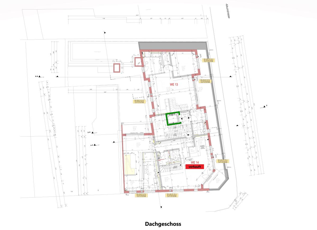 Das Angebot bezieht sich auf die Wohnung WE 13 im Dachgeschoß und Spitzboden Die Wohnung besteht in der unteren Wohnebene aus dem attraktiven Wohn/Essbereich von ca. 43 m² mit integrierter Küche und Zugang auf die tolle teilweise überdachte Dachterrasse von ca. 27 m². Über den Wohnraum gelangen Sie in den Schlaftrakt bestehend aus dem geräumigen Schlafraum von ca. 16 m² mit Ausgang auf die Dachterrasse, dem Abstellraum sowie dem großzügigen Bad mit Fenster von ca. 12 m². Diele, Garderobe sowie das Gäste-WC mit Waschmaschinenanschluß vervollständigen das Angebot in der unteren Wohnebene. Sie gelangen über eine schöne Treppe in den Spitzboden. Hier ist ein weiteres großzügiges Schlafzimmer bzw Gästezimmer von ca. 31 m² mit anschließender Ankleide vorgesehen. Auf Wunsch kann dieser Raum unterteilt werden. Ein Duschbad ein weiterer Abstellraum sowie ein Büro vervollständigen das Angebot.