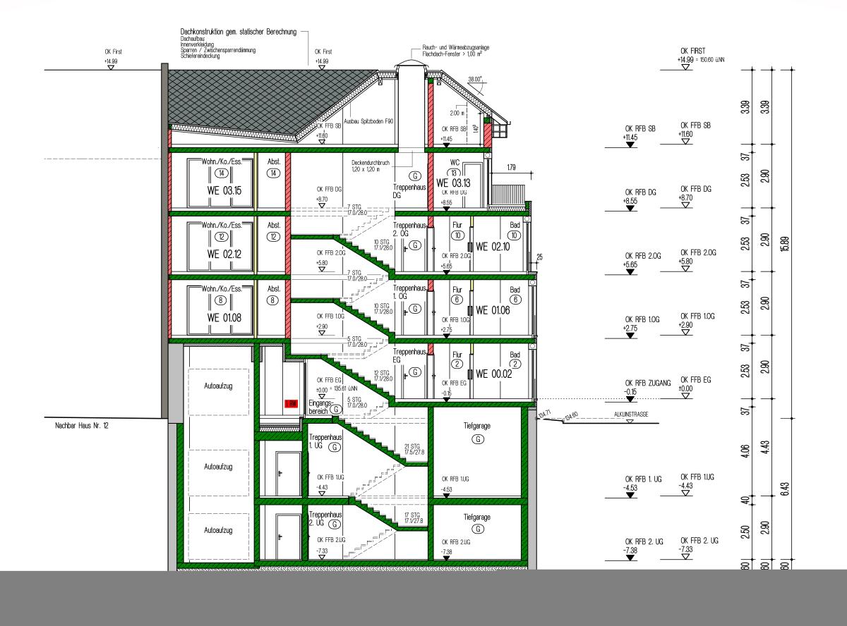 Es besteht die Möglichkeit Tiefgaragenstellplätze für 30.000 EUR zu erwerben.