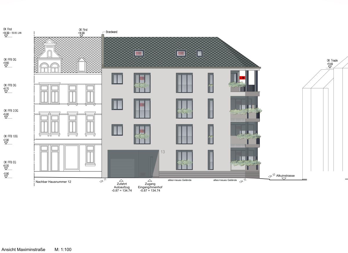 Wohnen Nähe Porta-Nigra - Modernes Wohnen im Energiesparhaus in ruhiger Top Innenstadtlage - Tolle helle Dachgeschoßwohnung im Maisonette-Stil mit schöner Dachterrasse.Moderne Eigentumswohnungen in gefragter Lage in der Nähe der Porta Nigra von ca. 24 m² bis ca. 157 m² Wohnfläche in einem attraktiven Mehrfamilienhaus in altersgerechter Ausführung mit Auszug, guter Ausstattung und moderner Technik. Alle Wohnungen verfügen über attraktive Balkone. Loggien und Terrassen. Die Baubeschreibung sieht die Beheizung mit einer Wärmepumpe vor. Das Objekt erfüllt den Standard des Gebäudeenergiegesetzes. Die vorgesehene 3-fach Verglasung der Fenster, elektrische Rollläden, die hochwertige Außendämmung, eine kontrollierte Wohnraumbelüftung mit Wärmerückgewinnung sowie die moderne Heiztechnik ermöglichen günstige Heizkosten. Die Innenausstattung können Sie noch mitbestimmen. Es sind attraktive Parkettböden, schöne Fliesen etc. vorgesehen. Der Energieausweis ist erstellt und hat die Energieklasse A +.