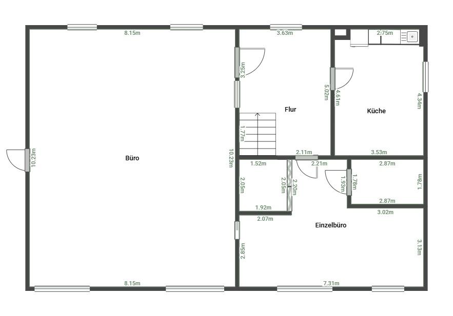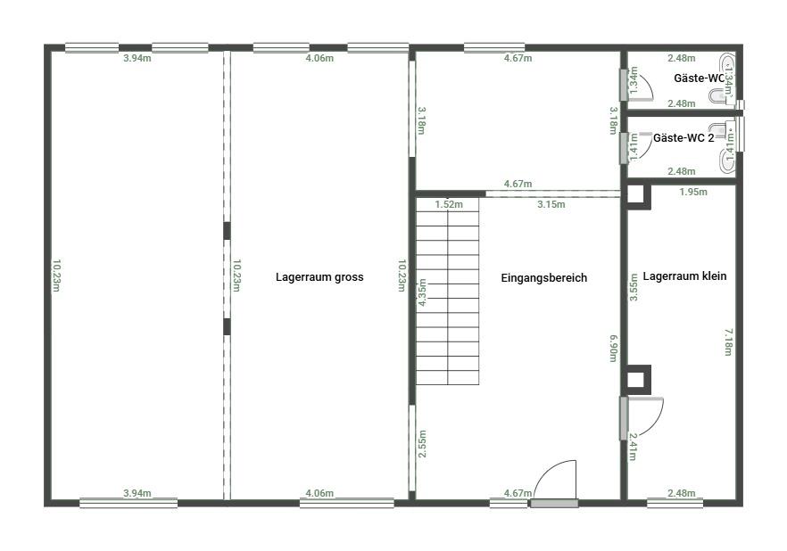 2016 wurde das Gebäude umfangreich renoviert. Im Erdgeschoss befinden sich die Lagerflächen sowie WCs und im OG durch eine innenliegende breite Treppe die Büros sowie Küche und Sozialräume sowie WCs.