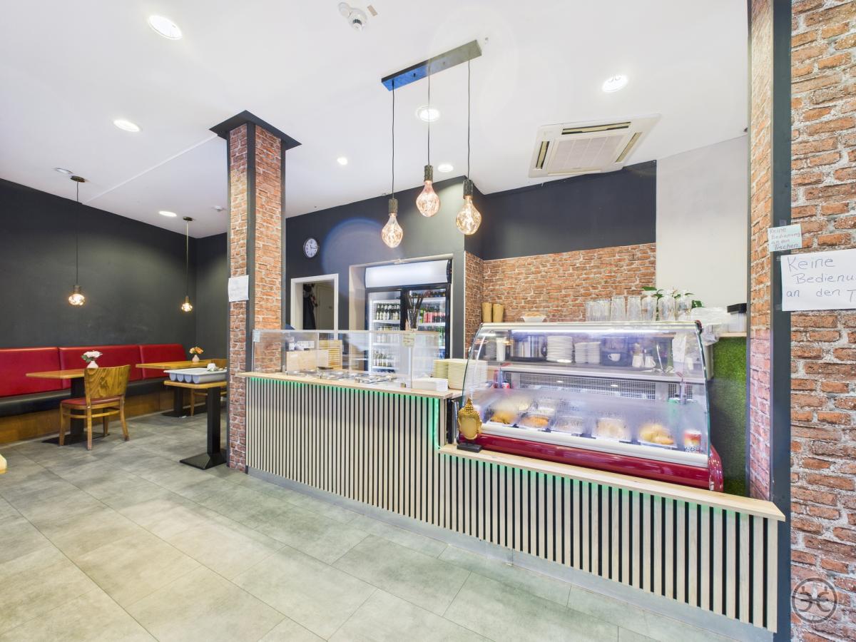 Im vorderen Bereich befindet sich derzeit der Gastraum mit Tresen. Im hinteren Bereich befindet sich eine kleine Vorbereitungsküche mit zusätzlichem Lagerraum. Dazu eine kleine Mitarbeiter-Pantry und ein Mitarbeiter WC.