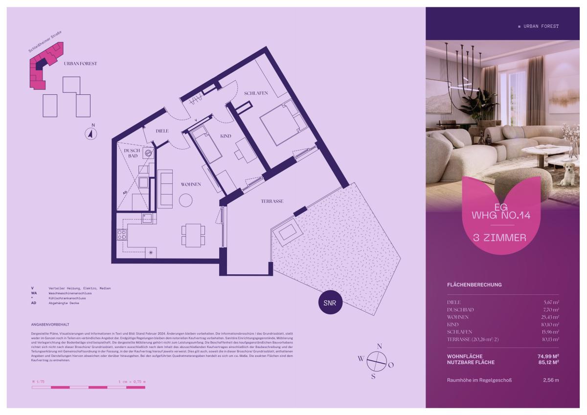 Diese 3-Zimmer-Wohnung im Erdgeschoss entfaltet auf ca. 74,99 m² Wohnfläche eine moderne, harmonische Raumkomposition. Der offene Wohn- und Essbereich mit integrierter Küche ist das Herzstück und öffnet sich zu einer großzügigen, teils geschützten Terrasse – ein Ort, an dem sich Innen und Außen zu einem fließenden Lebensraum verbinden. Ein helles Schlafzimmer und ein zusätzliches Kinder- oder Arbeitszimmer bieten flexible Rückzugsorte, während das edle Duschbad den Komfort abrundet. Bodentiefe Fenster tauchen alle Räume in Licht und schaffen eine elegante Verbindung zur Natur. Das Besondere: jedes Zimmer hat einen Zugang zum Privatgarten.