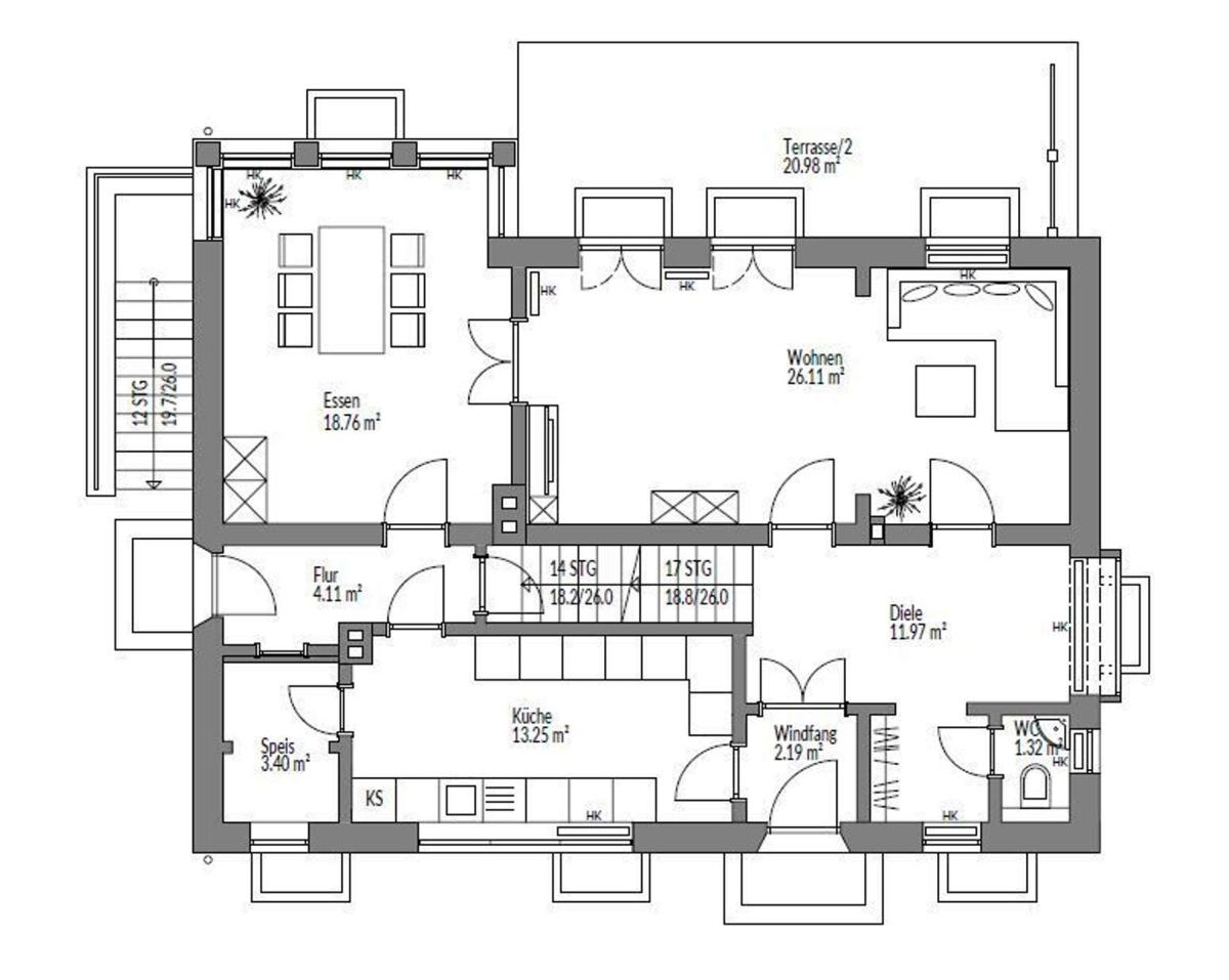 - Kaminanschluss für gemütliche Winterabende in Wohn- bzw. Esszimmer