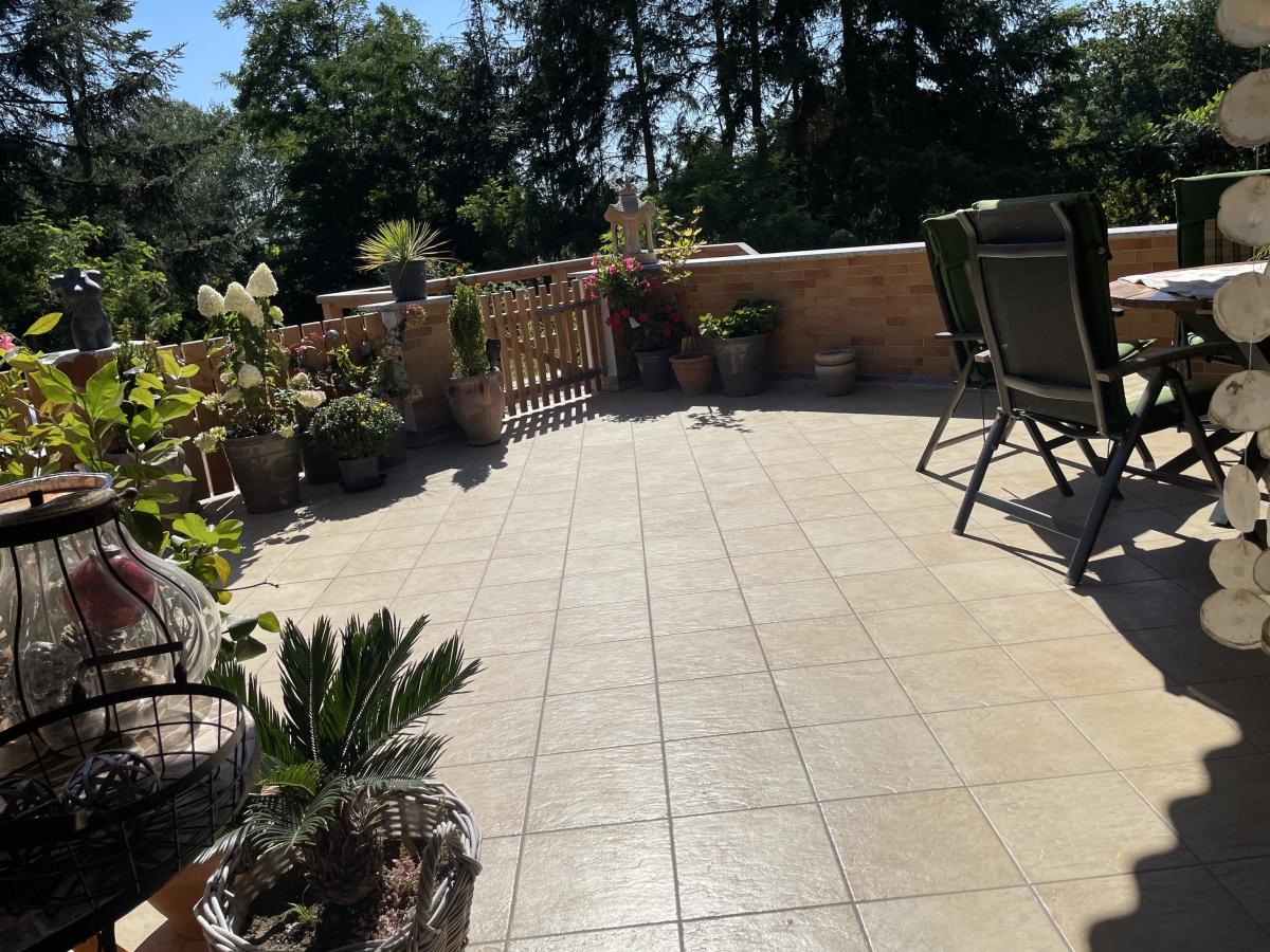 2025 neuer Terrassenzugang und Aufwertung durch Granitplatten auf Terrassenmauer für den exklusiven Charakter.