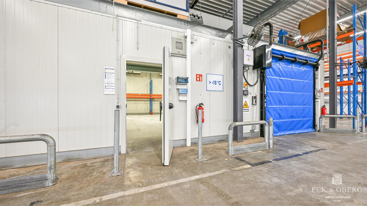 Die Halle ist ursprünglich als Kühlhalle konzipiert, jedoch zwischenzeitlich aufgetaut und kann derzeit ebenfalls als konventionelle Lagerhalle genutzt werden. Die technische Infrastruktur ermöglicht es, die Halle bei Bedarf jederzeit wieder in eine Kühlhalle zurückzuführen. Damit eröffnet die Immobilie flexible Einsatzmöglichkeiten – von klassischer Lager- und Logistiknutzung bis hin zu temperaturgeführten Prozessen.