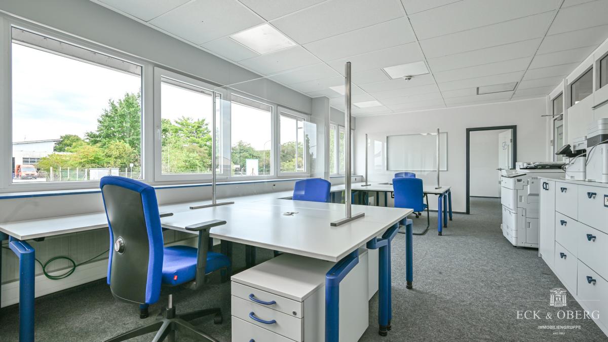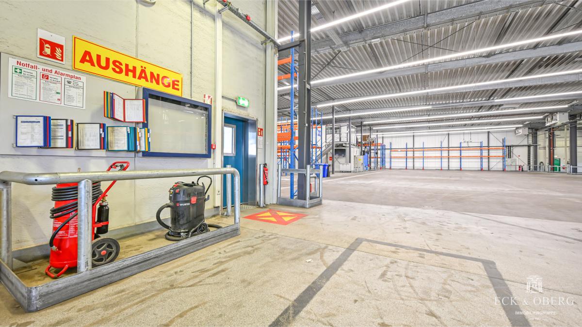 Mit insgesamt 20 Lade- und Sektionaltoren bietet das Objekt optimale Andienungsmöglichkeiten für den Warenumschlag. Ergänzt wird die Hallenfläche durch einen ca. 518 m² großen Büro- und Sozialtrakt, der funktionale Arbeitsplätze, Aufenthaltsbereiche und Sanitäranlagen bereitstellt.