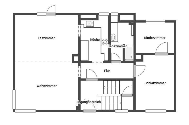 - Erdgeschoss komplett saniert (inkl. Putz-Wände & Innentüren)