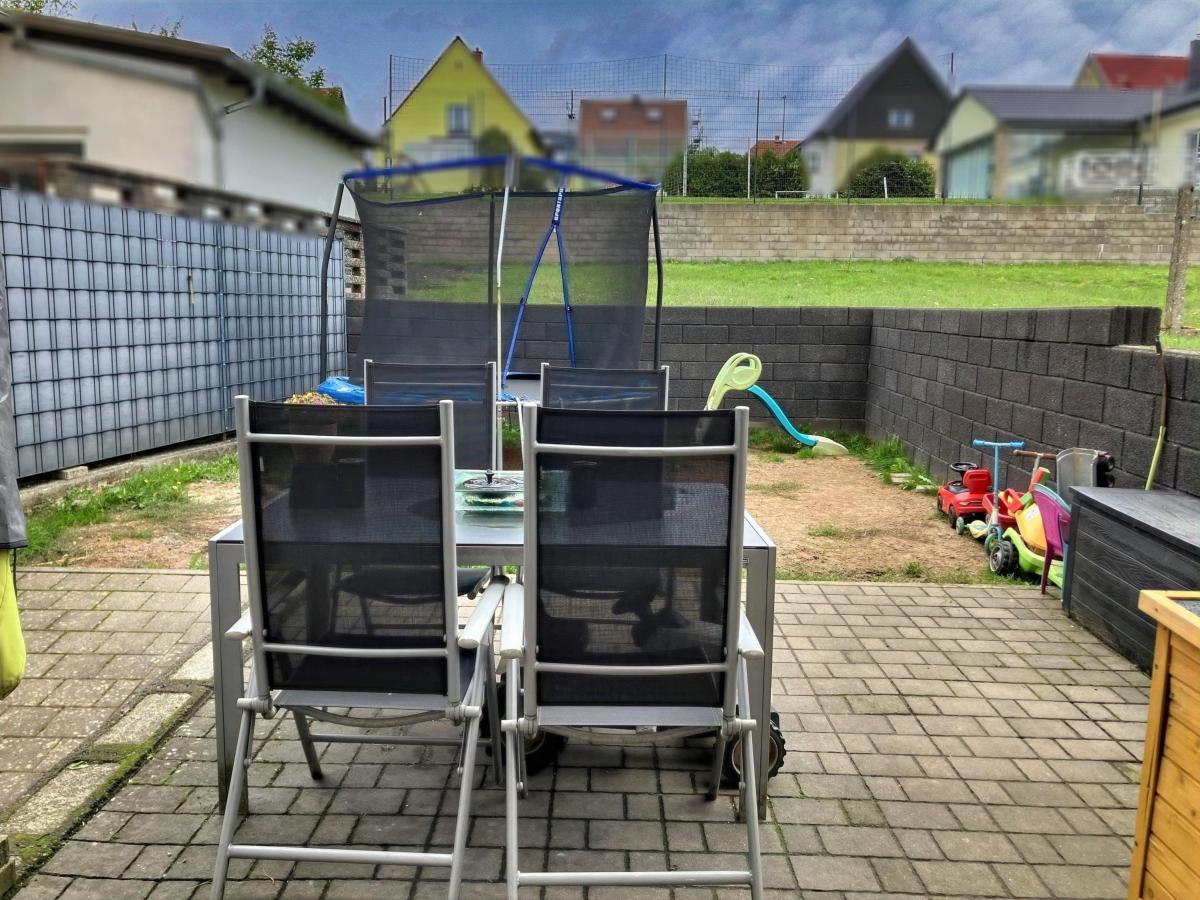 Das Grundstück verfügt über einen kleinen Garten sowie mehrere Parkmöglichkeiten: zwei Stellplätze vor dem Haus, eine Tiefgarage und ein Carport.