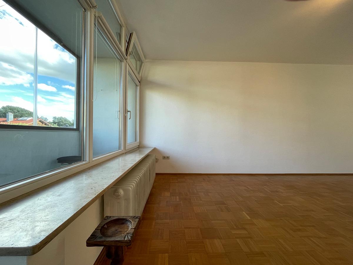 Der westseitige Zugangsbalkon ist verglast, der ostseitige Balkon, der vom Wohnzimmer aus betreten wird, hat abnehmbare Scheiben, um ihn im Winter optional als Wintergarten zu nutzen.