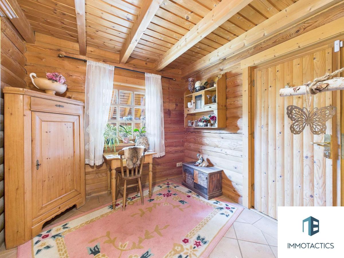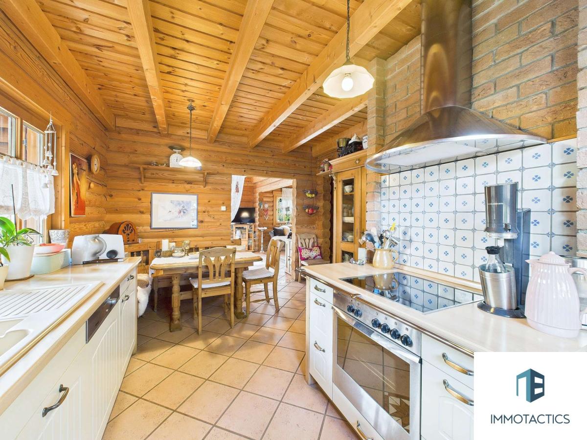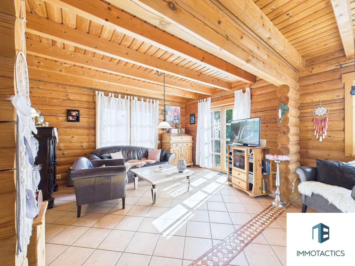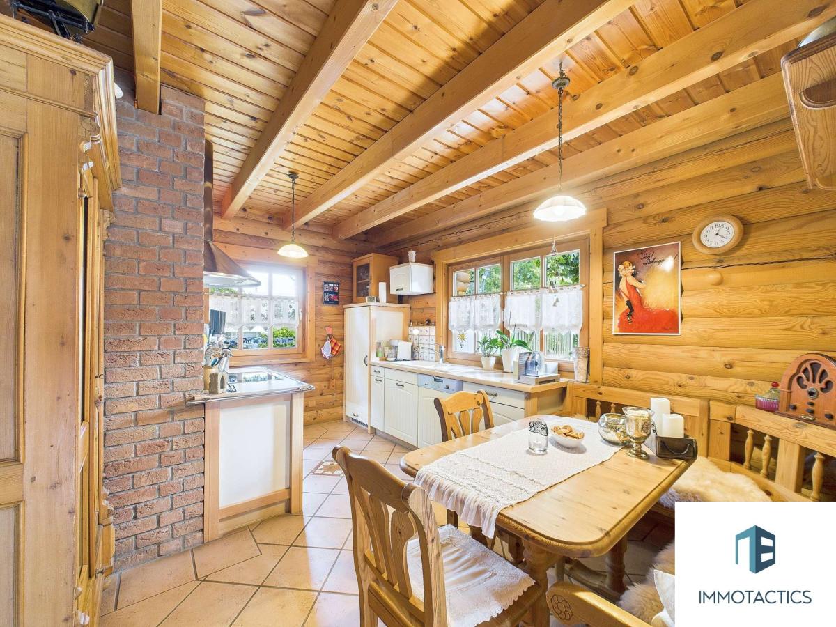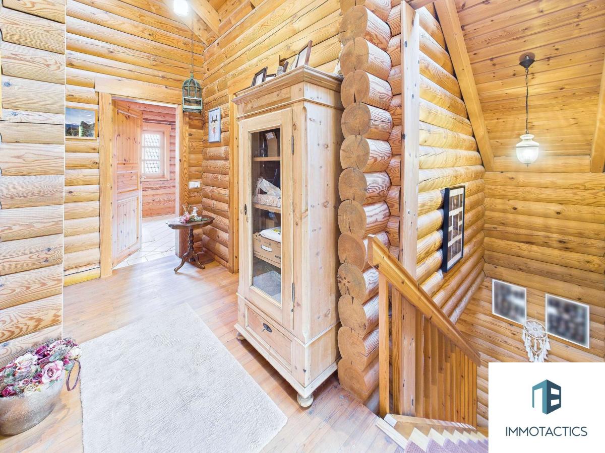 Dieses freistehende Einfamilienhaus wurde 1997 in hochwertiger Blockbohlenbauweise errichtet. Verarbeitet wurde nordische Kiefer aus Finnland – sichtbar in den warmen Holzflächen und den kräftigen Balken. Die Gebäudehülle ist sehr gut gedämmt und sorgt ganzjährig für ein angenehm ausgeglichenes Wohnklima. Die natürliche Materialität des Holzes verleiht dem Haus eine ruhige, einladende Atmosphäre – viele empfinden sie als wohnlich, klar und geborgen.