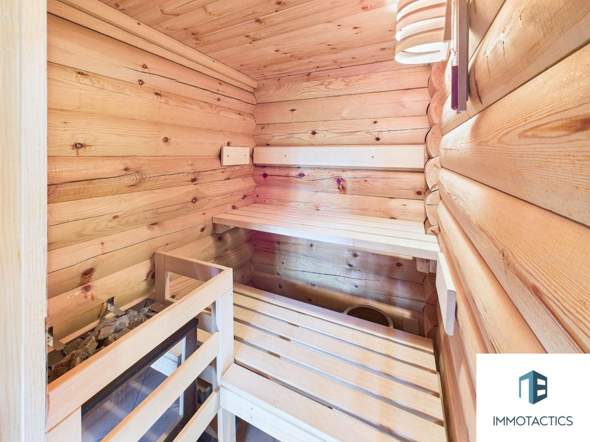 Besonders komfortabel ist die Fußbodenheizung und der kleine Wellnessbereich im Erdgeschoss: Direkt neben der Sauna steht ein Duschbad zur Verfügung – ideal nach Sport, Gartenarbeit oder an kühlen Tagen. Ein separates Gäste-WC ergänzt die Ebene.