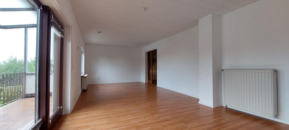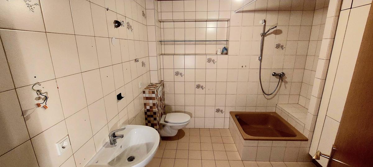 Das EG besteht aus Diele, Bad mit WC, Küche, Ess- und Wohnzimmer mit Zugang zum Richtung Garten gelegenen, überdachten Balkon, zwei weiteren Zimmern.