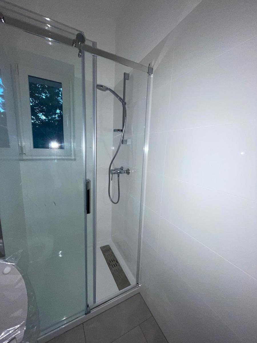 Badezimmer ist ebenfalls komplett kernsaniert, ausgestattet mit modernen Fliesen, hochwertigen Armaturen und stilvollem Design.