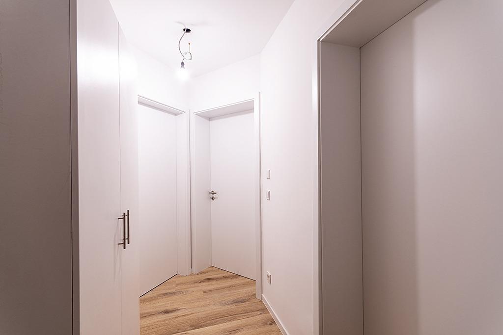 Die Fußbodenheizung sorgt für ein angenehmes Raumklima und der zeitgemäße Vinyl-Fußbodenbelag in heller Holzoptik für ein ansprechendes Ambiente. Der großzügige Wohn- und Essbereich mit offener Küche schafft eine einladende Atmosphäre. Ein besonderes Highlight ist der lichtdurchflutete Wintergarten mit Blick auf den ruhigen Hinterhof (mit eigenem PKW-Stellplatz und Gartenanteil) – ein idealer Ort zum Entspannen oder als alltäglicher Wohnraum nutzbar. Die beiden gut geschnittenen Schlafzimmer sind durch elektrische Außenjalousien komplett zu verdunkeln. Die moderne Gegensprechanlage mit Videofunktion sorgt für mehr Sicherheit beim Einlass von Besuchern. Im Badezimmer mit Dusche findet sich ebenfalls Platz für eine Waschmaschine. Anschlüsse für TV und Internet sind in den Schlaf- und Wohnräumen vorhanden. In allen Räumen sind in die Decke Strahler für gutes Licht eingebaut.