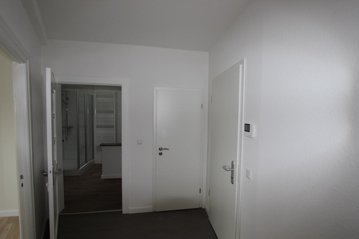 Erleben Sie zentrumsnahes Wohnen; Bäcker, Schulen und Supermärkte sind fußläufig bequem erreichbar. Die Wohnung ist ruhig und hell gelegen, insbesondere aufgrund der Dreifachverglasung der neuen Fenster.