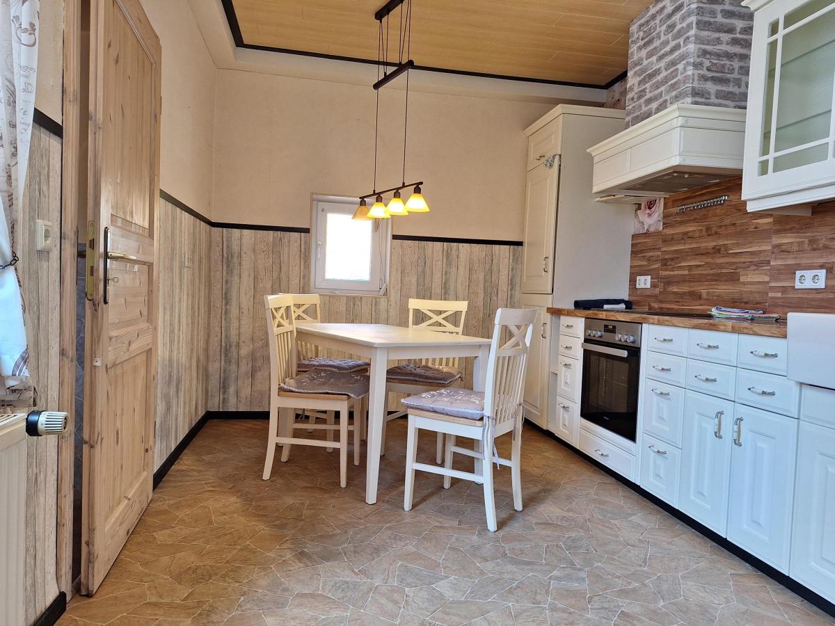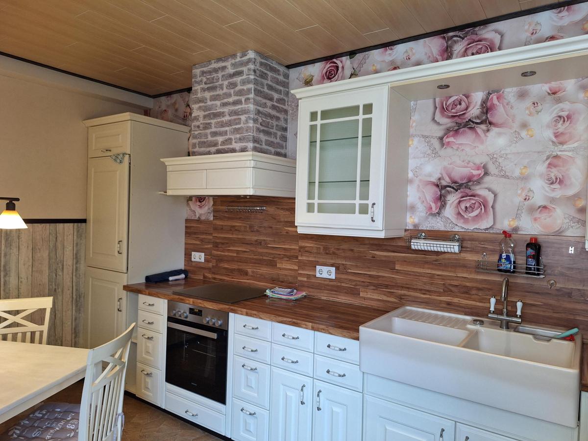 Im Erdgeschoss gelangen Sie durch den geräumigen Flur in die großzügige Wohnküche, die im Landhausstil gehalten ist.