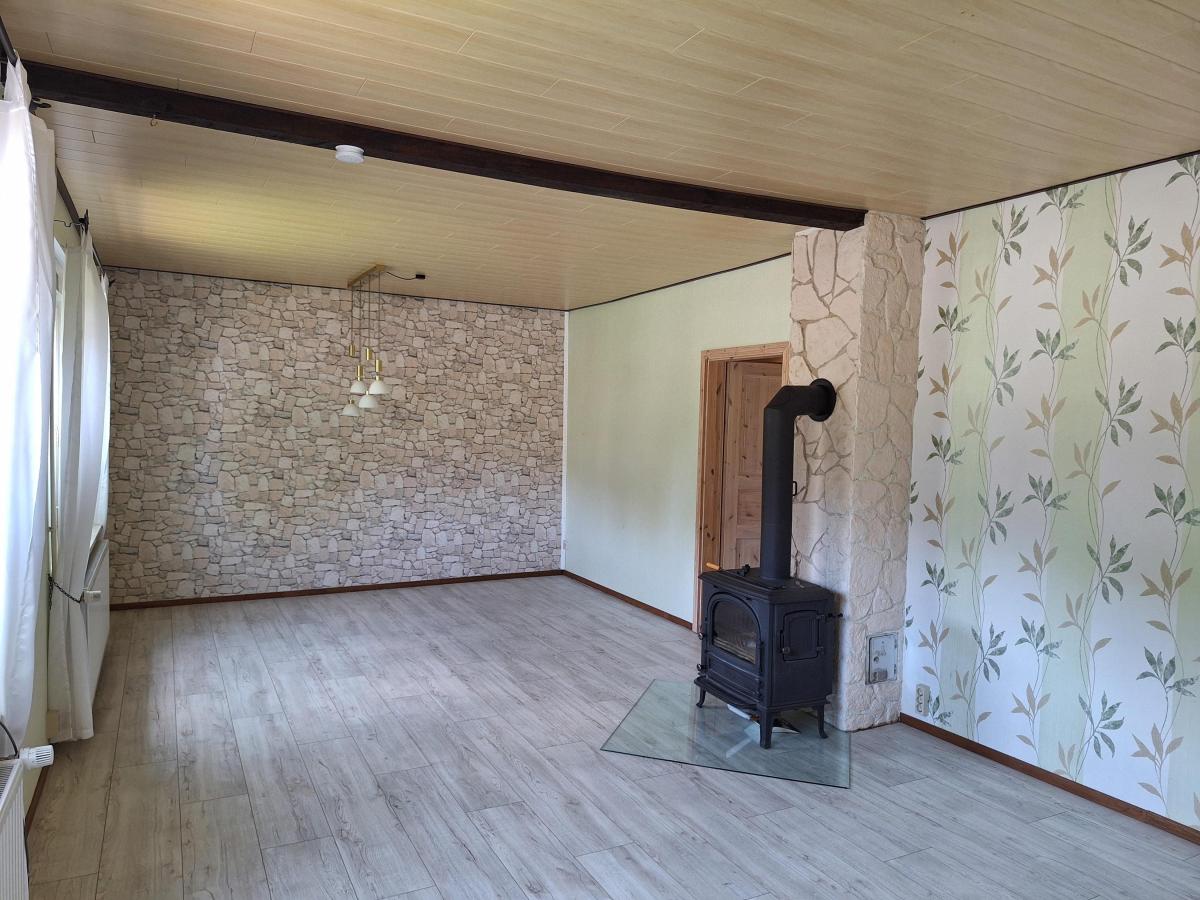 Der Holzofen im großen Wohn-Esszimmer garantiert gemütliche Stunden.