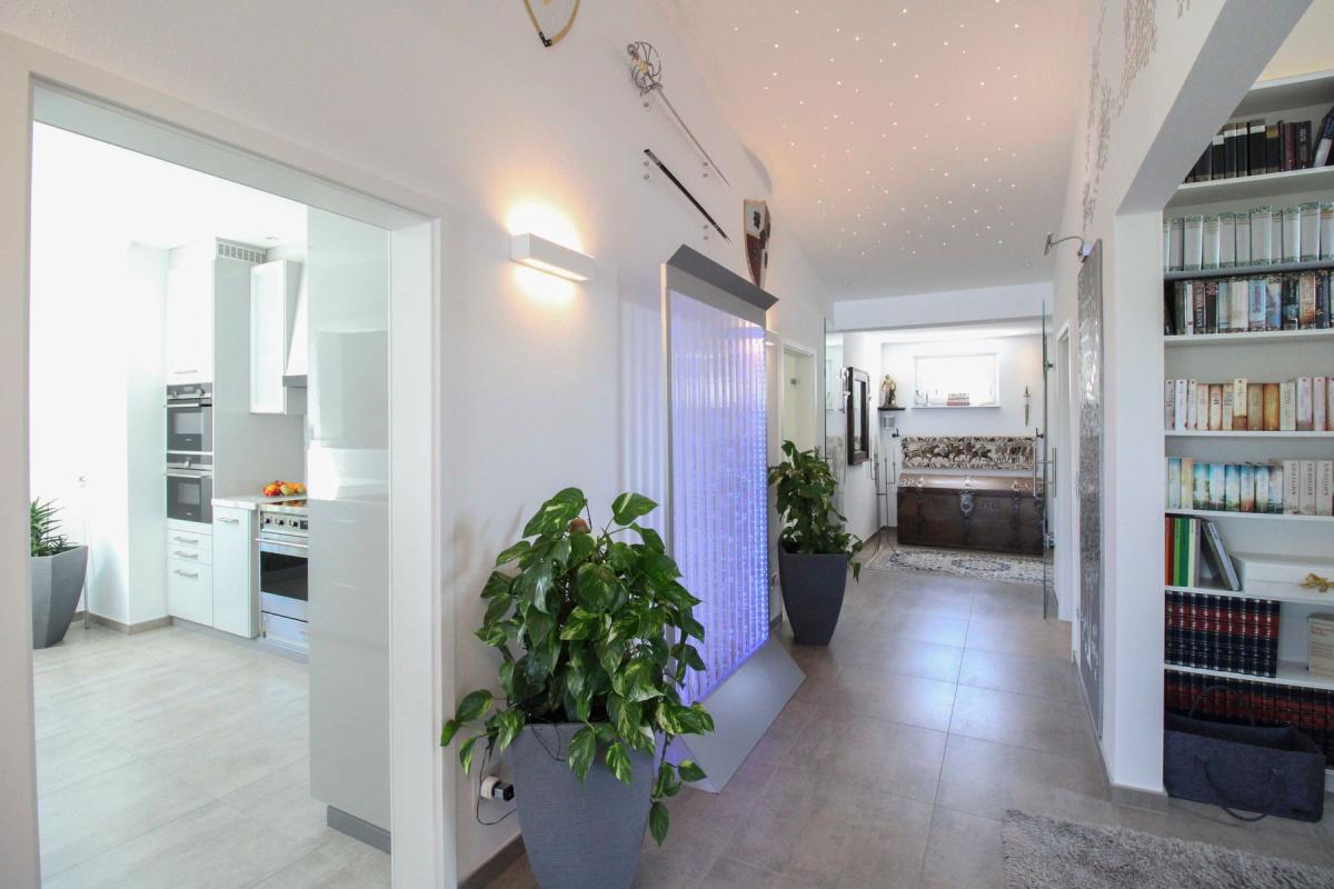 Die sechs Zimmer verteilen sich auf zwei zusammengelegte Wohneinheiten, die architektonisch harmonisch verbunden wurden. Dies wird durch zwei getrennte Grundbucheinträge unterstrichen – ideal für flexible Nutzungskonzepte oder als Generationenwohnen. Die Immobilie wurde ca. 2017 Kernsaniert.