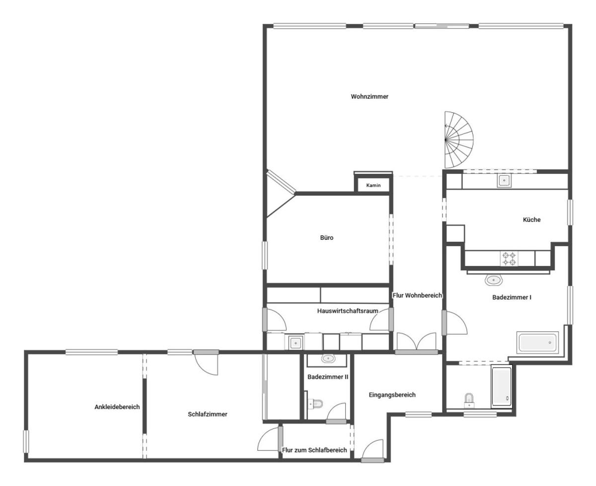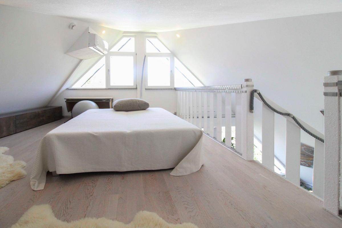 Ein weiteres architektonisches Highlight ist die stilvolle Galerie im Dachgeschoss, die das Wohngefühl auf eine neue Ebene hebt. Dank bodentiefer Fenster durchflutet Tageslicht die Räume und verbindet Innen mit Außen zu einem harmonischen Ganzen.