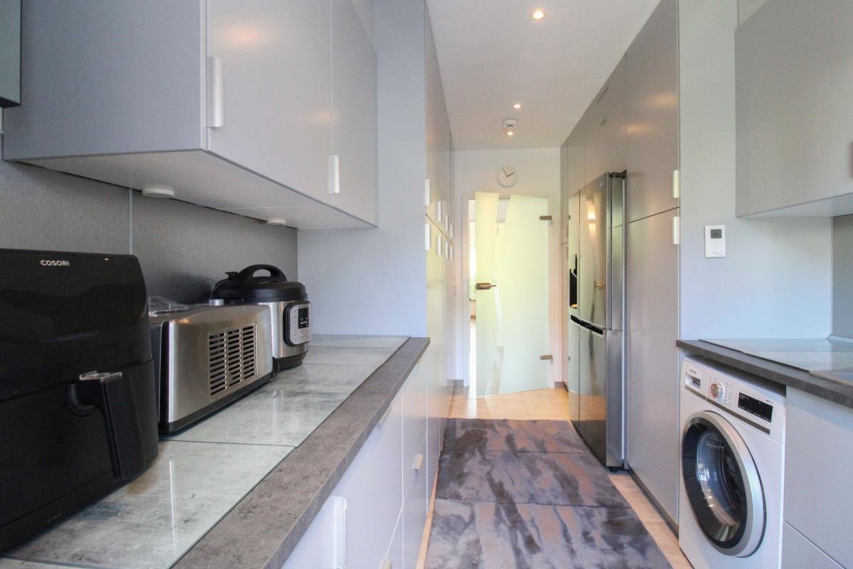 Für kulinarische Genießer wartet ein weiteres Highlight: Die sehr moderne, voll ausgestattete Einbauküche ist nicht nur ein optischer Blickfang, sondern auch funktional auf dem neuesten Stand – und im Kaufpreis inklusive. Kochen und Genießen auf höchstem Niveau.