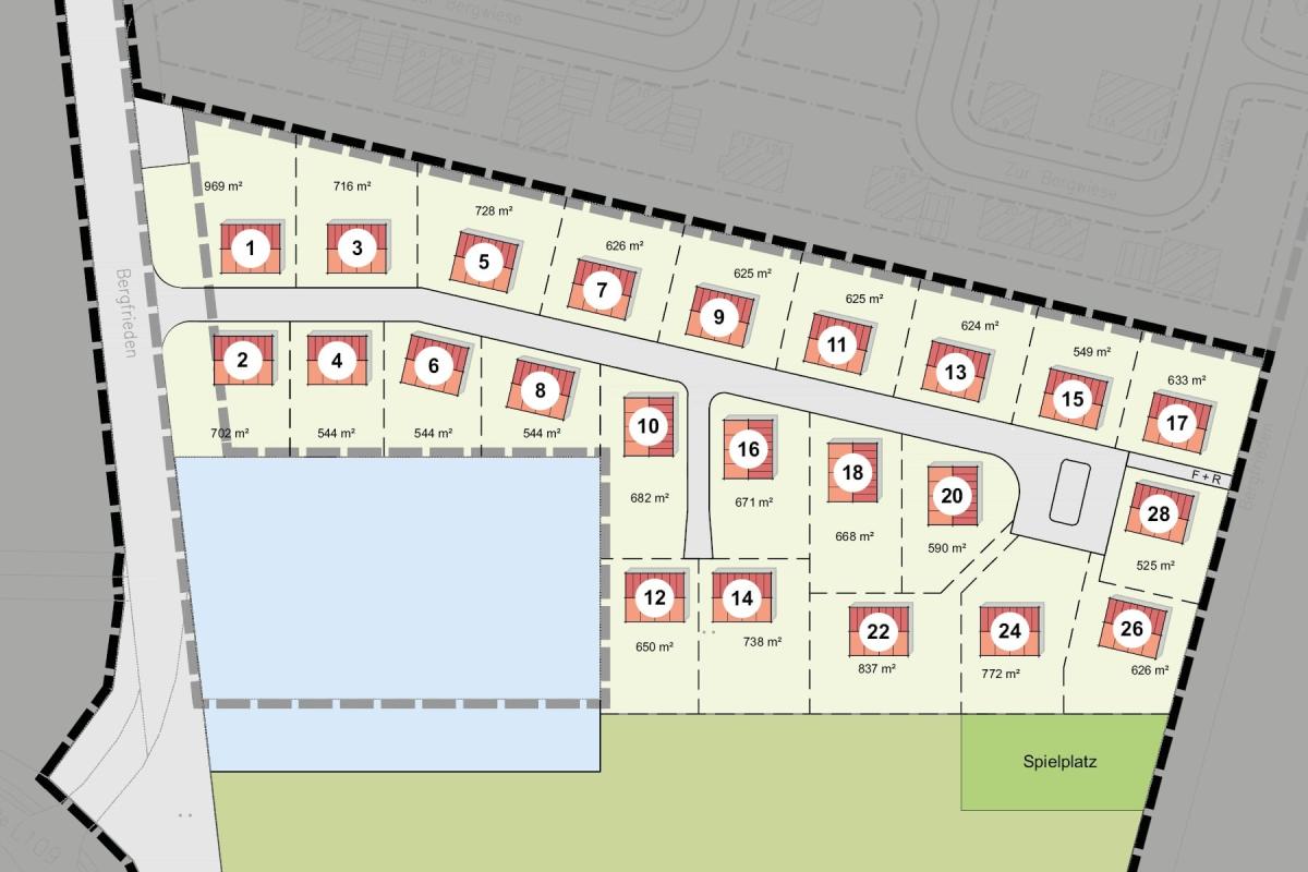 Insgesamt sind hier 23 Baugrundstücke entstanden. Das vorgesehene Baugrundstück hat eine Größe von 738 m².