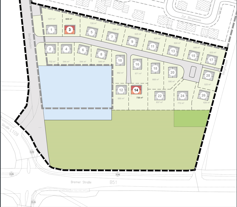 Der Bebauungsplan Nr. 76 "Haarener Siek" ist bereits rechtskräftig und damit verbindlich. Es ist sowohl Doppelhaus- als auch Einzelhausbebauung zugelassen.