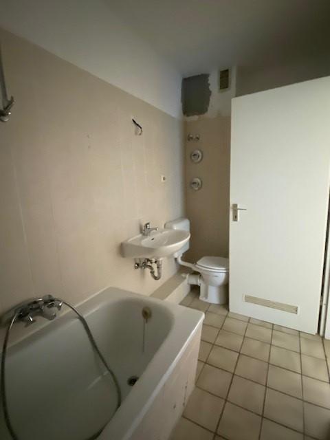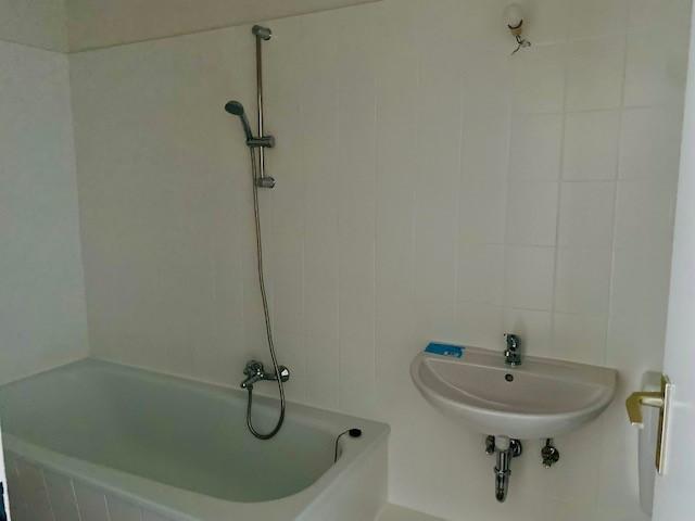 Die Wohnung verfügt über ein Schlafzimmer mit ausreichend Stellfläche für ein großes Bett und einen Kleiderschrank. Es gibt ein ein helles Badezimmer mit Badewanne, Waschbecken und WC. Die helle Tageslichtküche hat einen neuen großformatigen Fliesenspiegel erhalten.