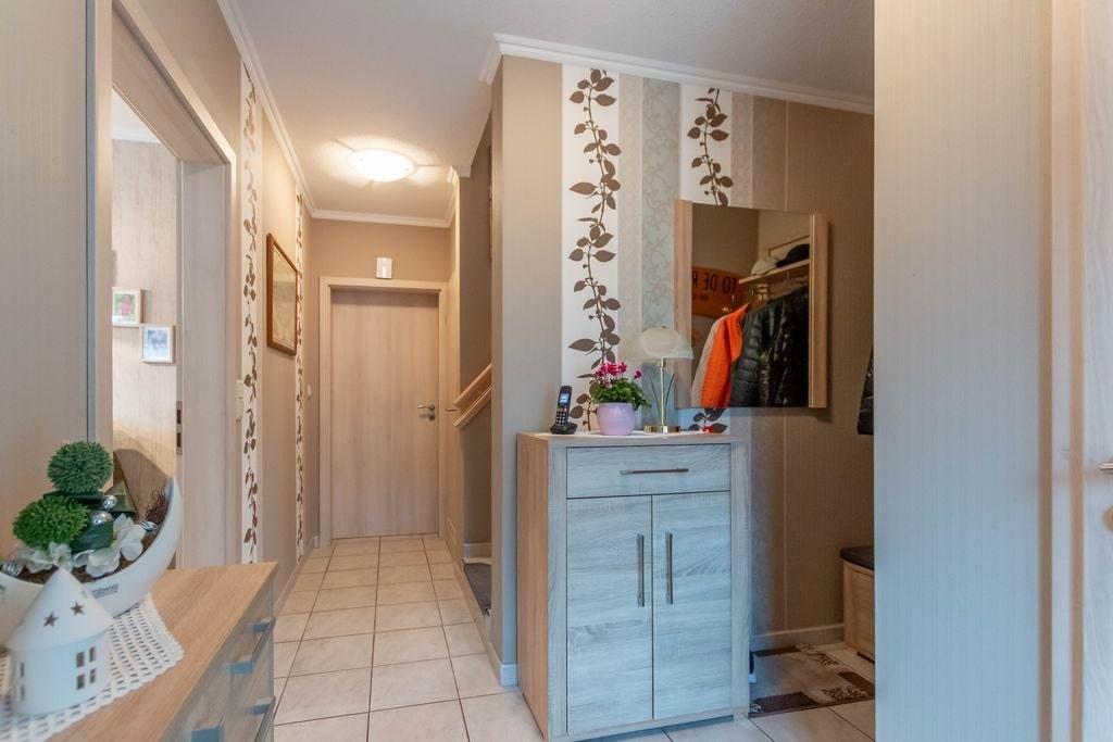 Im Erdgeschoss erwartet Sie die Diele mit Garderobenecke, die Wohnküche, das geräumige Wohn-/Esszimmer, ein praktischer Abstellraum unter der Treppe und das Gäste-WC.