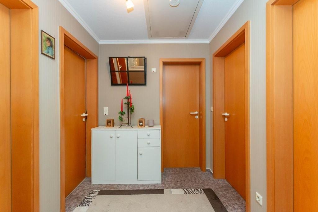Das Obergeschoss beherbergt drei Schlafzimmern, ein Tageslichtbad sowie einen weiteren Abstellraum, indem unter anderem die Heizung untergebracht ist.