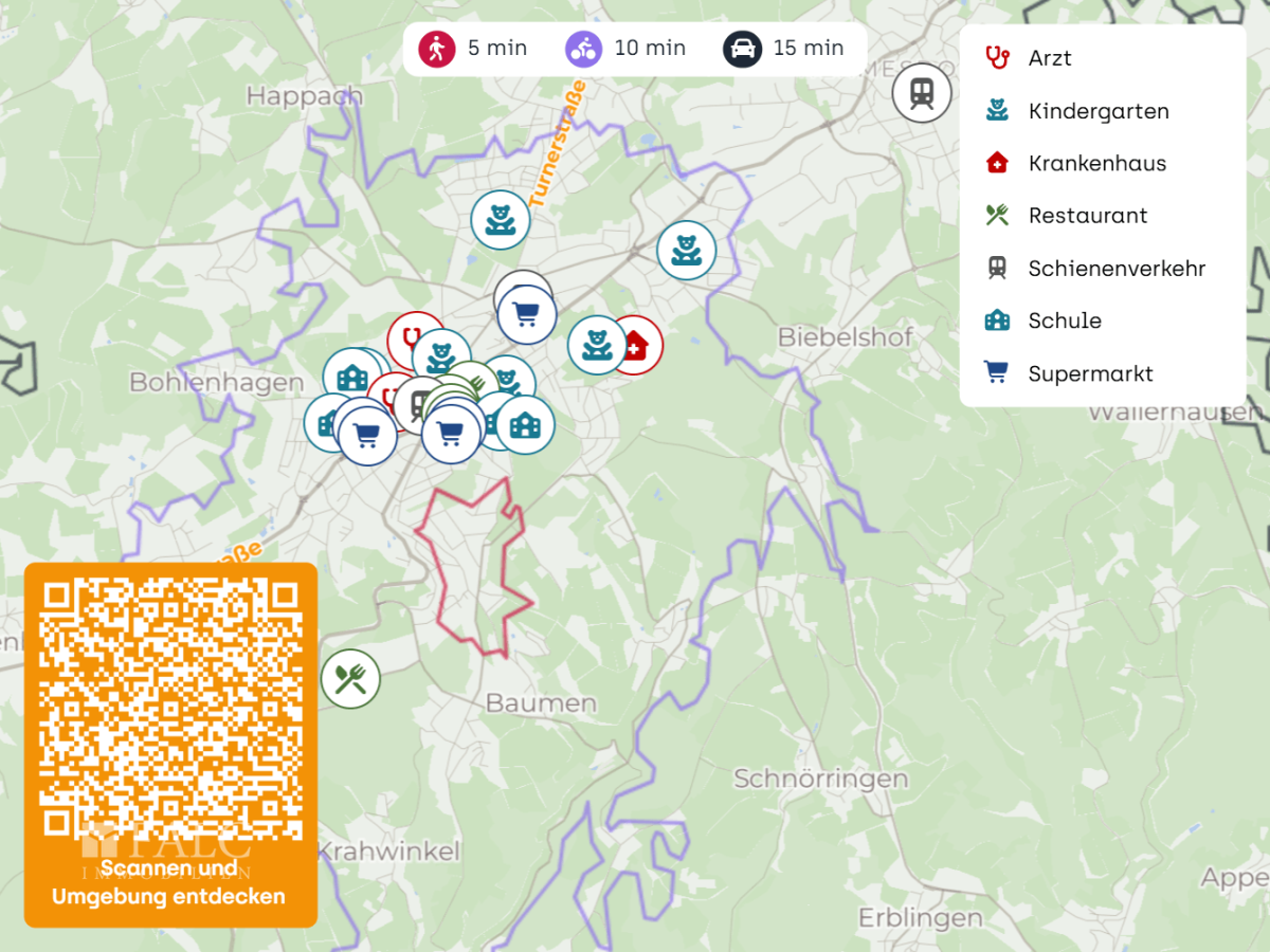 Die Verkehrsanbindung von Waldbröl ist gut ausgebaut. Die Autobahn A4 ist in kurzer Zeit erreichbar und bietet eine direkte Verbindung zu den Ballungsräumen Köln und Bonn. Der nächste größere Flughafen ist der Flughafen Köln/Bonn, der etwa eine Stunde Fahrtzeit entfernt liegt. Der öffentliche Nahverkehr ist durch Buslinien gut abgedeckt, mit einer Bushaltestelle in unmittelbarer Nähe der Immobilie. Für den täglichen Bedarf stehen Supermärkte wie REWE und EuropaMarkt in der Nähe zur Verfügung.