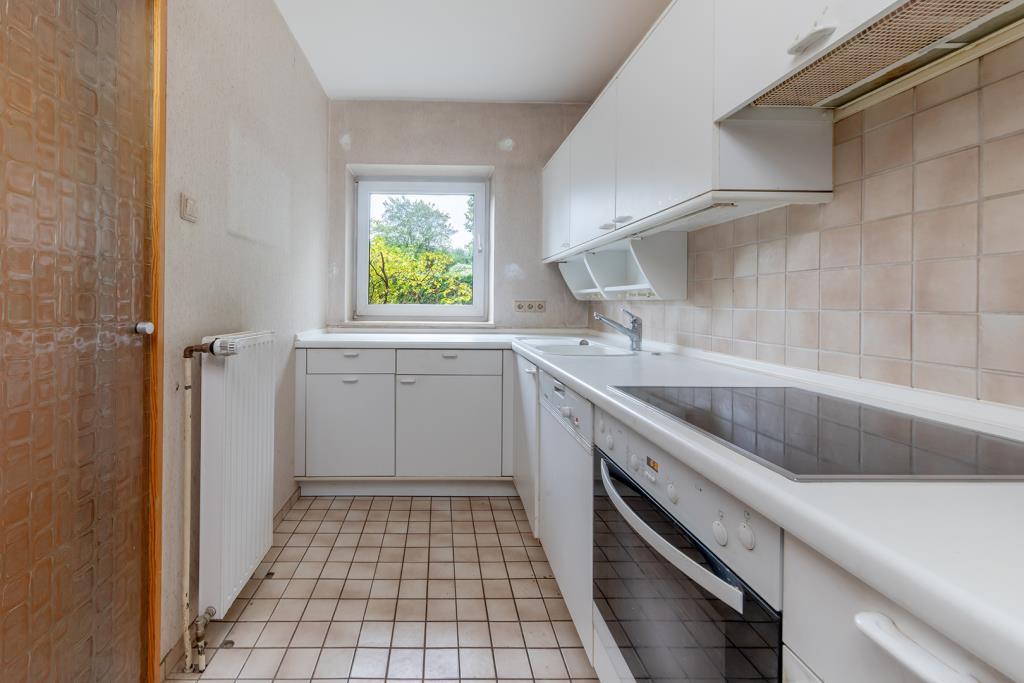 Linker Hand befindet sich die Küche, welche mit einer zeitlosen Einbauküche (weiße Fronten, weiße Arbeitsplatte) sowie allen notwendigen Elektrogeräten ausgestattet ist. Ein großes Fenster sorgt hier für tolle Lichtverhältnisse und eine ideale Belüftung beim Kochen.