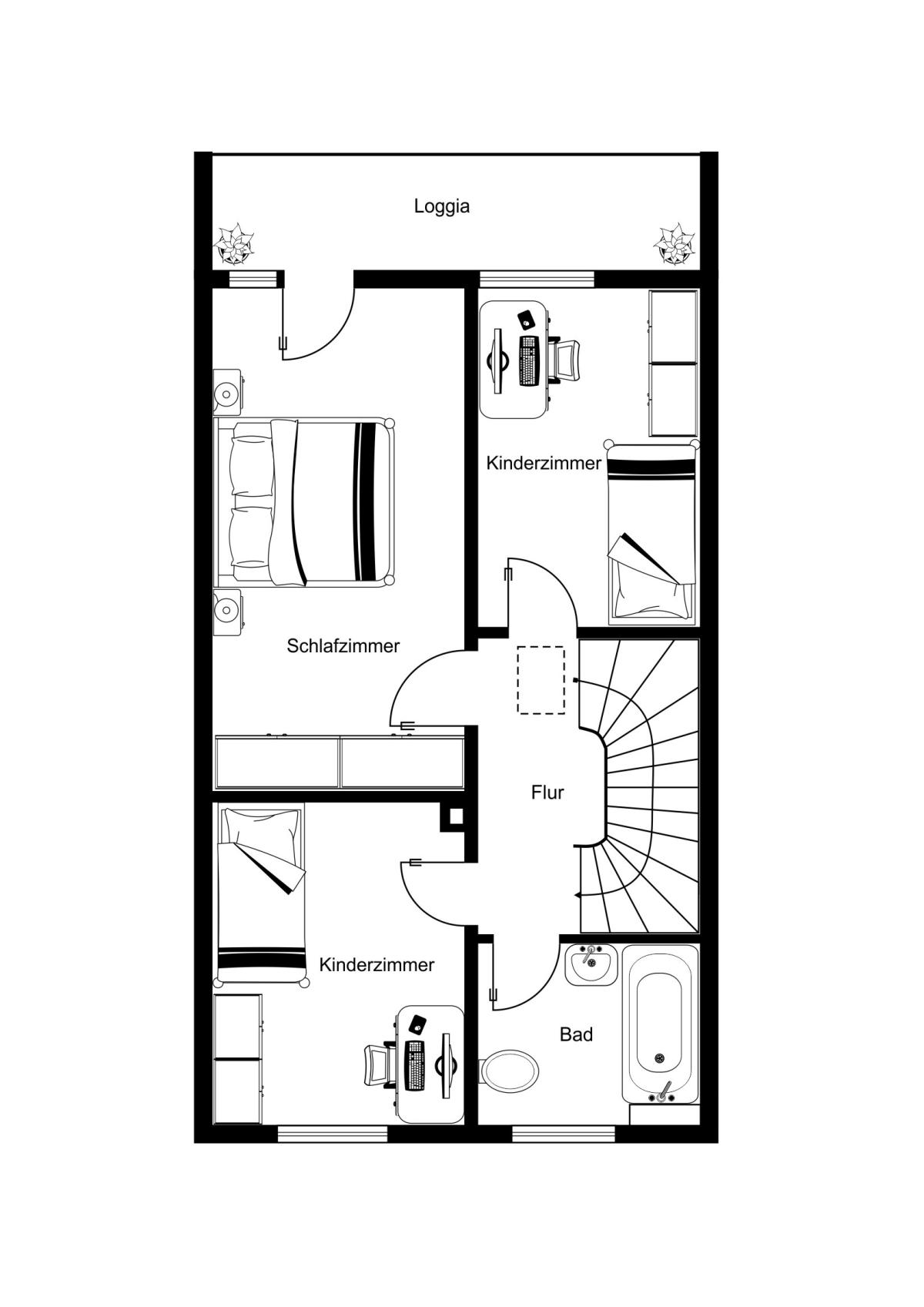 Die zwei weiteren Zimmer können als Kinder-, Gäste- oder Arbeitszimmer frei genutzt werden.