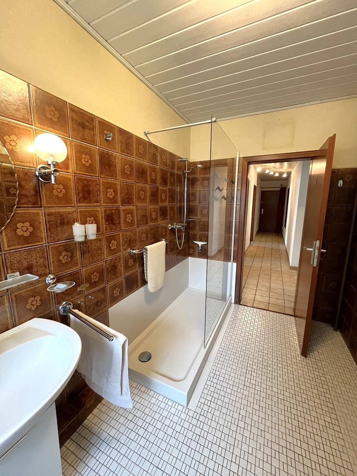 Die 3- bzw. 2 2/2-Zimmer-Eigentumswohnung liegt mit zwei weiteren Wohnungen im Hochparterre des Mehrfamilienhauses. Sie bietet einen weitläufigen zentralen Wohnungsflur mit Garderobennische, ein großes Wohnzimmer mit Balkonzugang und ein geräumiges Schlafzimmer. Zwei kleine Zimmer wurden durch Wandrückbau räumlich zusammengelegt. Daneben sind natürlich noch Küche und Bad vorhanden, die sich in ihrer Ausführung und Farbgebung jeweils im Stil der 1970er Jahre zeigen. Zuletzt wurde im Bad eine großzügige Duschsituation hergestellt. Die Wohnung zeichnet sich durch ihre Geräumigkeit und wirtschaftliche Raumaufteilung aus. Sie ist insgesamt durchaus renovierungs- bzw. modernisierungsbedürftig, stellenweise sind vermeintlich nutzungsbedingte feuchte Wandpartien erkennbar. In den einzelnen Räumlichkeiten sind unterschiedliche Boden- und Wandbeläge und auch Vertäfelungen vorhanden. Die Wohnungselektrik ist verbesserungswürdig. Der große Balkon zur Straßenseite erstreckt sich über die Breite des Wohnzimmers. Die Wohnungsfenster haben Außenrollläden. Der zur Wohnung gehörende Kellerraum ist überdurchschnittlich groß. Die Eigentumswohnung eignet sich gut für einen 2- oder 3-Personenhaushalt.