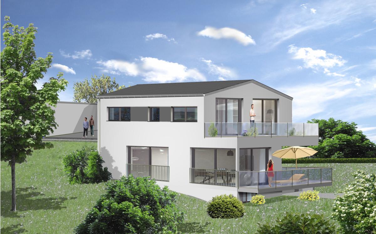 - Architektur: Moderne Neubauvilla mit großzügigen Fensterflächen, lichtdurchfluteten Räumen und klarer Linienführung