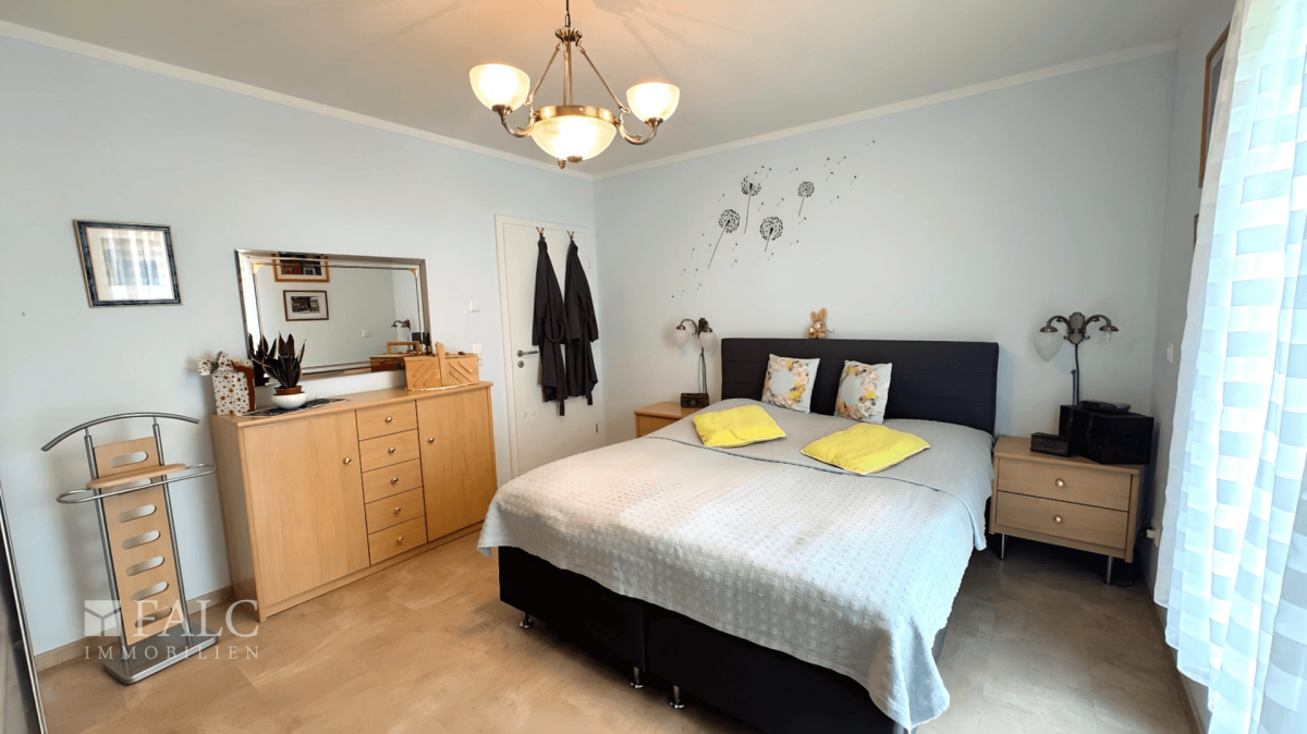 - Schlafzimmer mit bodentiefem Fenster