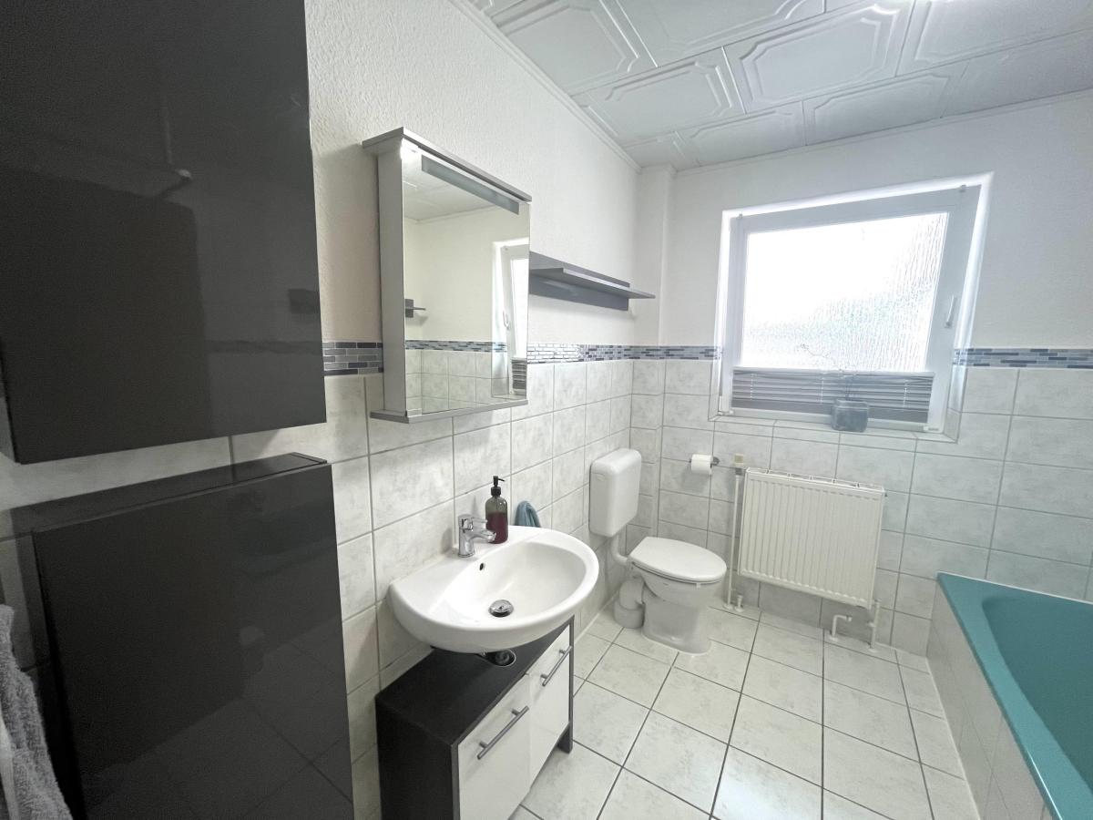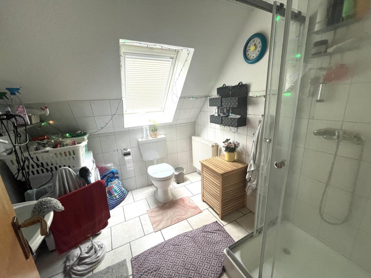 Im Erdgeschoss befindet sich eine großzügige Wohnung mit einer Fläche von ca. 86 m². Diese lichtdurchflutete Einheit bietet insgesamt drei Zimmer, zwei Schlafzimmer und ein einladendes Wohnzimmer mit einem charmanten Erker, der den Raum mit natürlichem Licht durchflutet. Der Zugang zum eigenen Garten ermöglicht es den Mietern, die frische Luft zu genießen und entspannende Stunden im Freien zu verbringen. Die durchdachte Raumaufteilung sorgt für ein angenehmes Wohngefühl und viel Platz für individuelle Gestaltung. Abgerundet wird die Wohnung durch ein geräumiges Vollbad mit Badewanne und Dusche, sowie eine gemütlichen Küche.