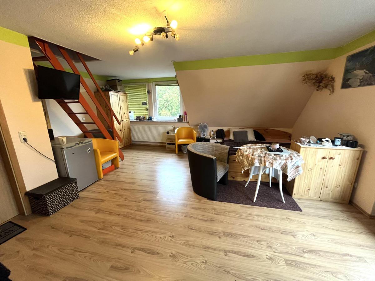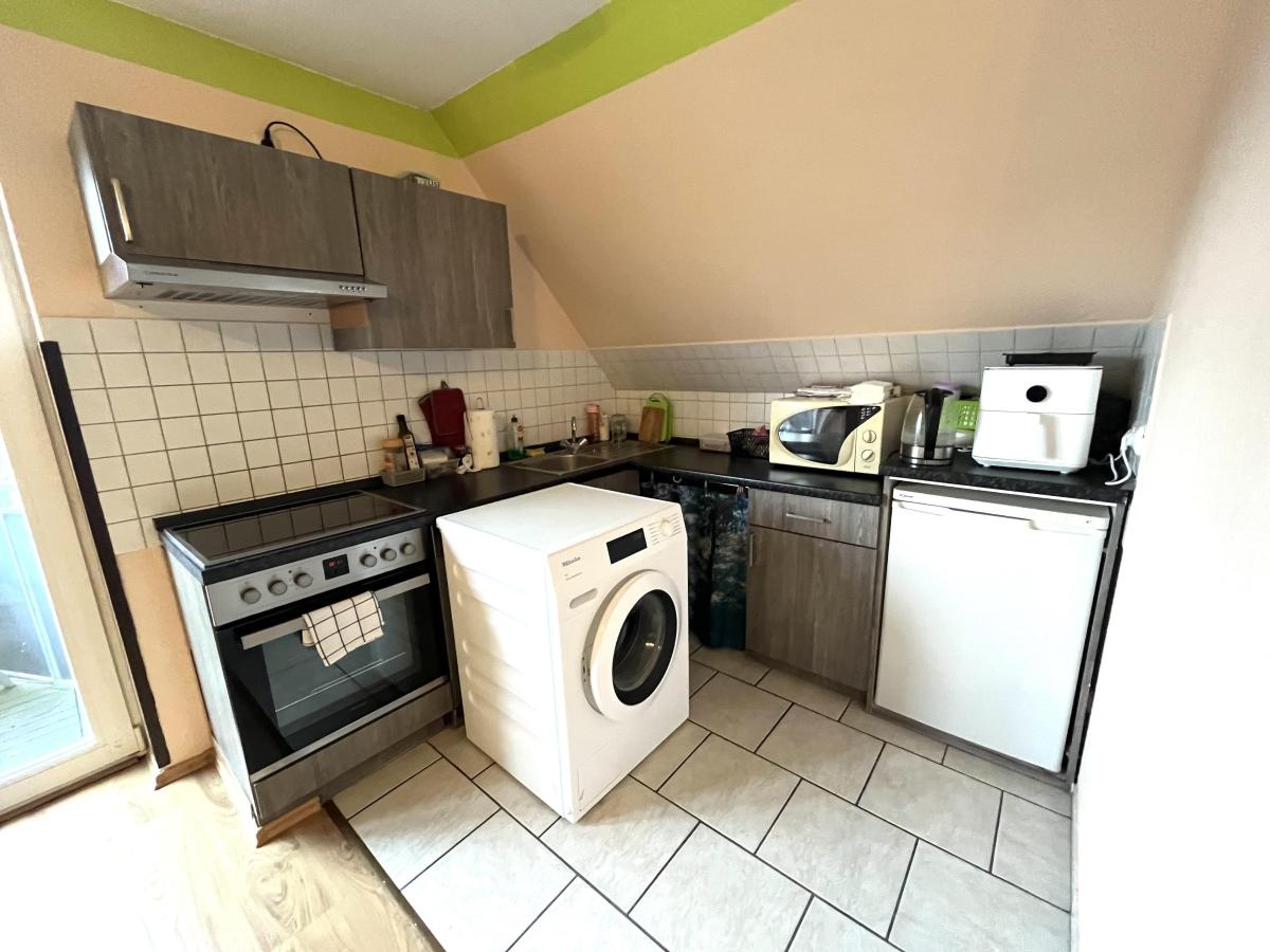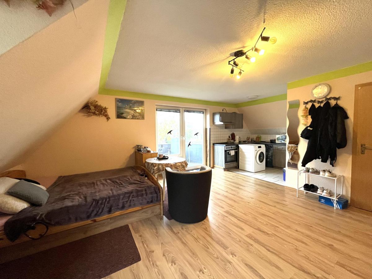 Im Obergeschoss befinden sich zwei weitere Wohnungen, die eine ideale Wohnatmosphäre bieten. Die erste Wohnung mit ca. 38 m² verfügt über zwei gut geschnittene Zimmer, eine separate Küche und ein Badezimmer mit Dusche, was für praktisches Wohnen sorgt. Die zweite Wohnung ist ca. 32 m² groß und bietet ein großzügiges Zimmer mit einer Wohnküche sowie einen einladenden Balkon, der zum Entspannen und Verweilen an der frischen Luft einlädt.